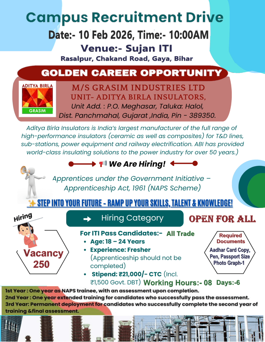 Qualification :10th + ITI Pass